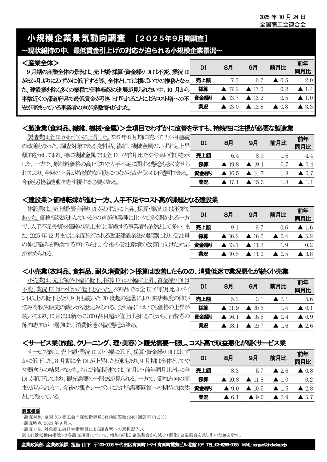 全国商工会連合会が実施する「小規模企業景気動向調査」の結果