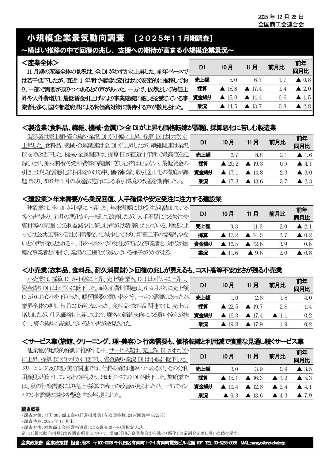 本調査は、全国の小規模企業(製造業・建設業・小売業・サービス業)