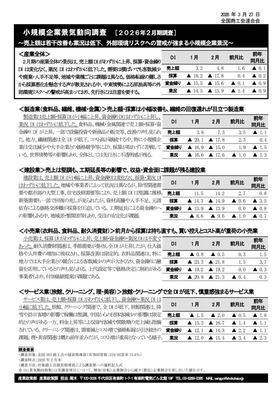 小規模企業景気動向調査結果公表(2月期)